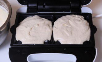 - Plaats de wafelvorm in de bakker en giet het deeg uit. Kook het product in ongeveer 5 minuten goudbruin.