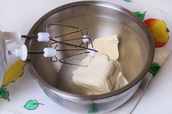 - Combineer zachte boter met suiker. We malen de producten op een handige manier.