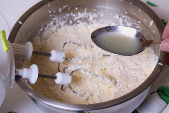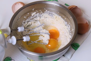 - Combineer eieren met suiker en klop grondig tot een gladde massa.