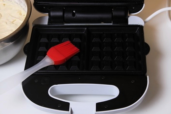 Vet het wafelijzer licht in met olie. Eén druppel is genoeg.
