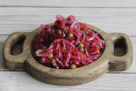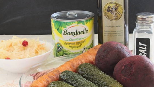 - Een eenvoudig recept voor vinaigrette met zuurkool, doperwten en augurk