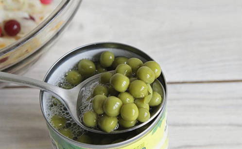 - Voeg erwten uit blik, zout, gemalen peper toe, roer om en de vinaigrette is klaar.