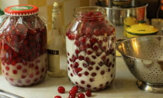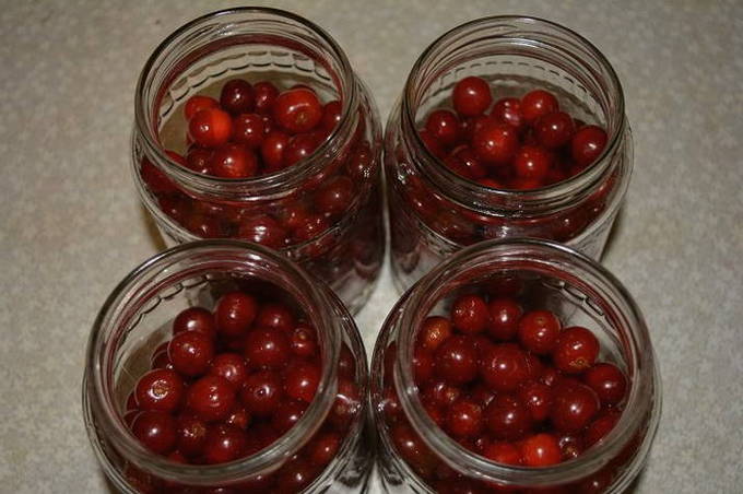 - Doe bessen in potten zodat ze ongeveer de helft van de container bereiken en giet er 2 eetlepels van. Sahara. Doe dan de kersen weer en voeg suiker toe. Laat de potten met bessen een paar uur staan zodat het sap eruit kan.