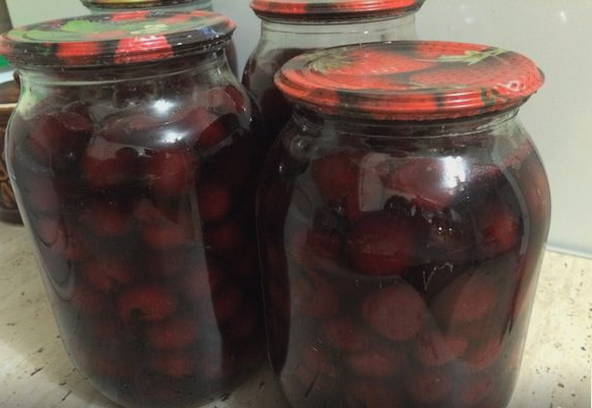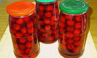- Kurk de afgewerkte kersen in hun eigen sap met deksels en zet ze ondersteboven tot ze zijn afgekoeld. Het is beter om kersen uit blik in hun eigen sap op een koele plaats te bewaren.