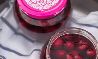 - Schik de afgewerkte kersen in gesteriliseerde containers, sluit de deksels goed en laat ze op een warme plaats staan tot ze zijn afgekoeld. Verplaats de potten met kersen vervolgens naar een koele plaats.