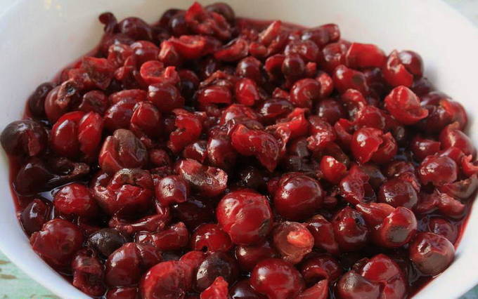 Kersen, gekookt in hun eigen sap, behouden het maximale voordeel en de smaak en kunnen tegelijkertijd de hele winter op een koele plaats worden bewaard. Deze bessen zijn geweldig als ingrediënt in taarten of ander gebak, en als toevoeging aan granen, zuivelproducten en ijs.