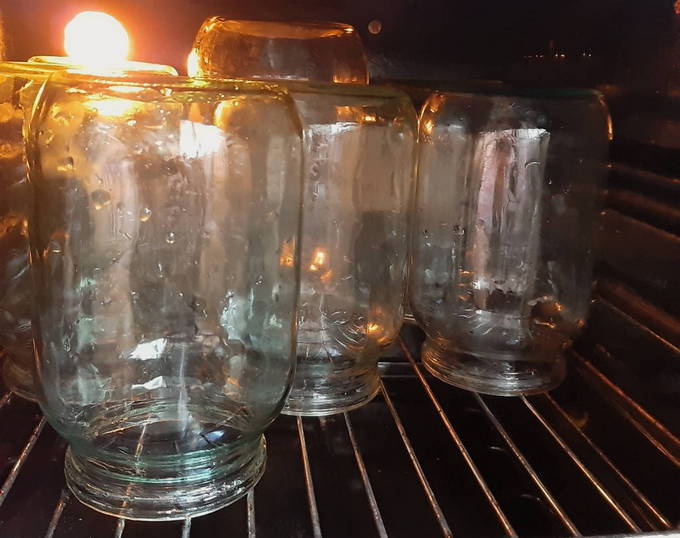 - Steriliseer potten die geschikt zijn voor conservering samen met de deksels.