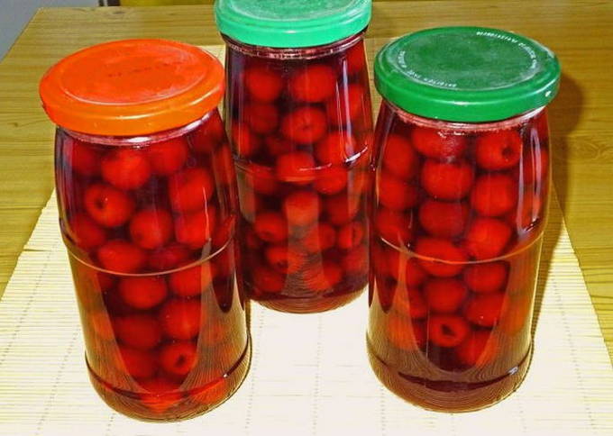 Een recept voor luie huisvrouwen, want voor de bereiding van zo'n kers is het niet eens nodig om de zaden uit de bessen te halen. Kersen behouden zoveel mogelijk hun natuurlijke smaak en kleur, waar je op lange winteravonden van kunt genieten.