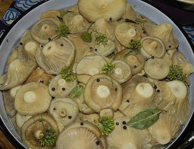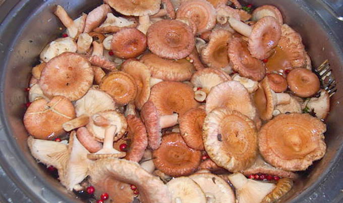 - We maken de paddenstoelen schoon van bosafval, spoelen grondig af onder stromend water en doen ze in een diepe bak. Vul met koud water, laat twee tot drie dagen staan. We verversen het water drie keer per dag om het risico op verzuring te verkleinen. De op deze manier doorweekte golven worden vervolgens geblancheerd en gekoeld.Op de bodem van een diepe container (glazuur, glas, keramiek, hout) leggen we een deel van de gewassen bladeren van eiken, mierikswortel, kers en gieten een dunne laag grof zout.