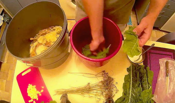 - Pel en was de knoflookteentjes. Je kunt alle knoflook door een pers persen, of je kunt de teentjes in grote stukken snijden - doe wat je wilt. We wassen ook dille-paraplu's.