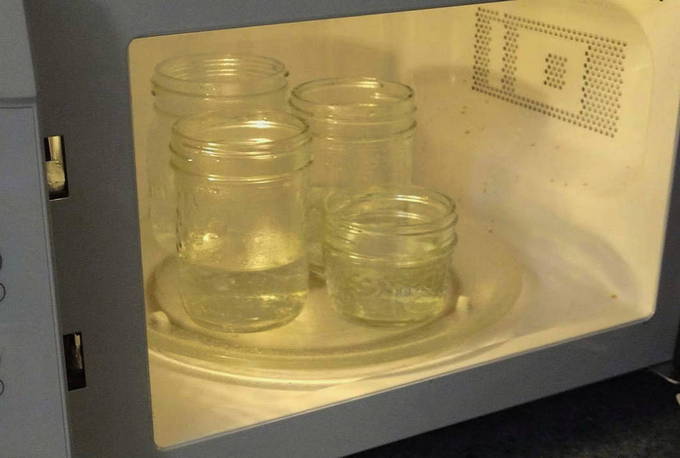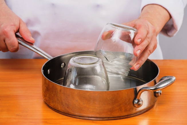 - Tegelijkertijd bereiden we een container voor baby-appelmoes voor. We reinigen en spoelen de potten samen met de deksels, laten ze drogen en steriliseren.