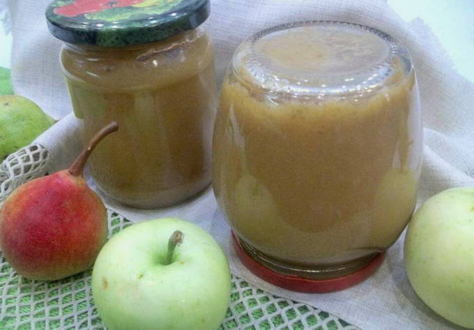 Om de lekkernij malser en zachter te maken, kun je gehakte peer aan de appelmoes toevoegen. Door de sappigheid van het fruit zal de massa niet zo dik blijken te zijn: het kan worden gebruikt als een heerlijk natuurlijk sap.