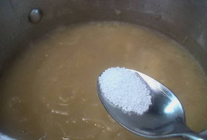 - Giet water bij het mengsel. We zetten de container op het fornuis en brengen op laag vuur aan de kook. We laten ze nog 15 minuten sudderen, terwijl we tegelijkertijd roeren.