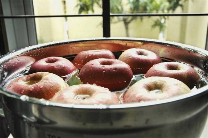 - Voor het maken van appelmoes kiezen we alleen vers en onbeschadigd fruit. We wassen ze en vegen ze af met een handdoek. Om het proces te versnellen, kunnen appels in een kom met water worden geplaatst en worden afgespoeld.