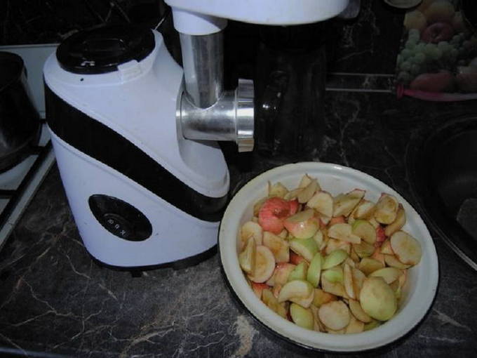 - We wassen en vegen de appels af met een handdoek. We halen ze uit de schil, snijden en verwijderen de kern. Wij verwijderen "staarten", rot en andere gebreken. Maal de appels in kleine blokjes.