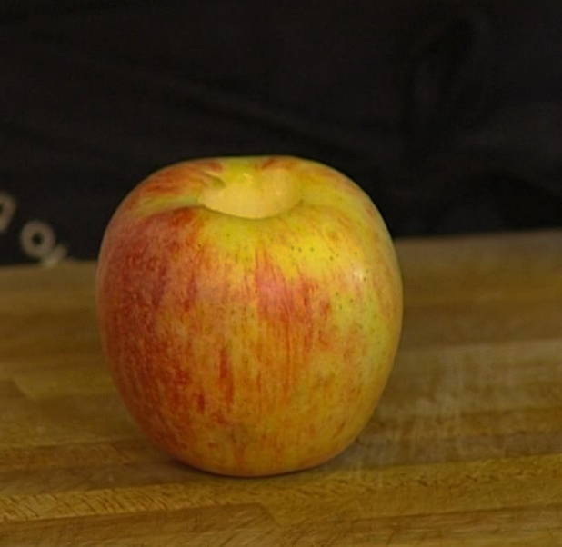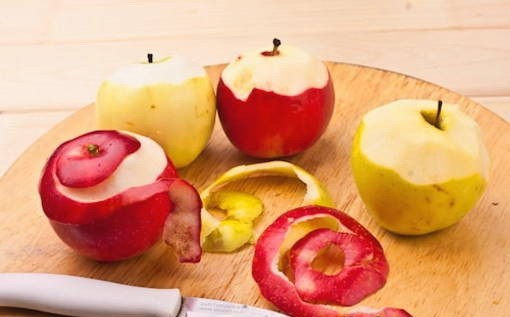 - Spoel de appels grondig onder water. Snijd van bovenaf een beetje schil van hen af.