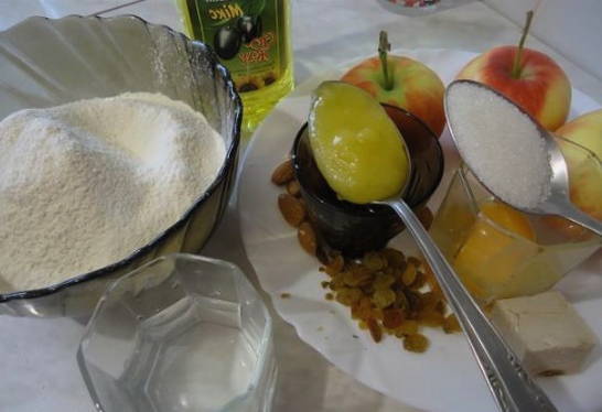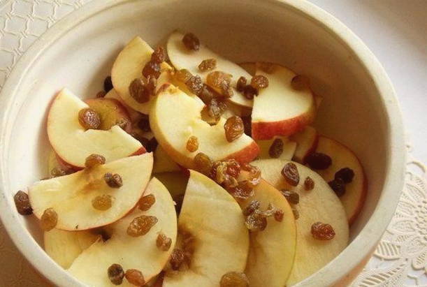 - Laten we verder gaan met de rest van de producten. Week de rozijnen in koud water, was de appels.