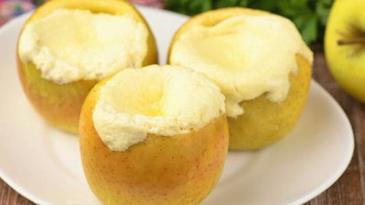 Delicaat en voedzaam dessert in een haast - gebakken appels met kwark. Zo'n lekkernij zal uw dierbaren of gasten zeker verrassen. Bereid het met een eenvoudig en snel recept.