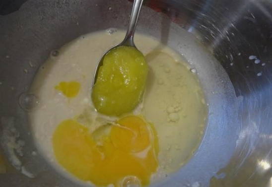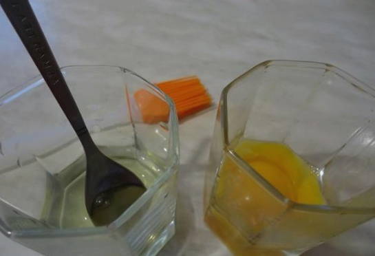 - Verdeel het resterende ei in wit en dooier. Klop ze apart.