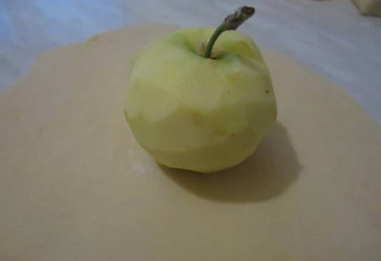 - Rol elk stuk in een dunne cirkel, in het midden waarvan we een appel plaatsen.