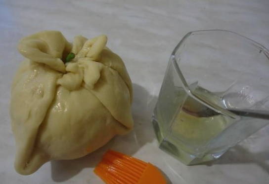 - Voeg honing, een ei en een snufje zout toe aan het werkstuk. Kneed tot een gladde massa.