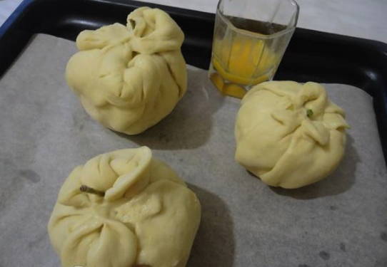 - We leggen het product op een bakplaat met perkament.Bedek met dooier en bak ongeveer 30 minuten op 180 graden.