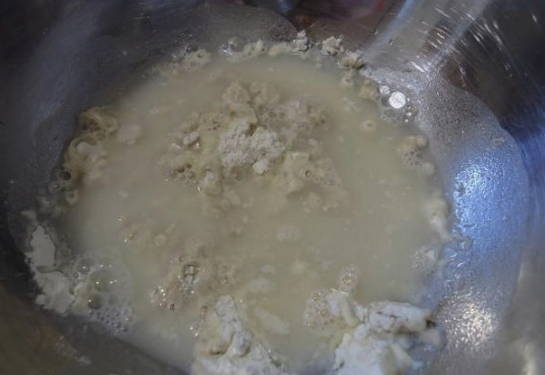 - Giet gist met een half glas warm water. Roer en laat even staan.