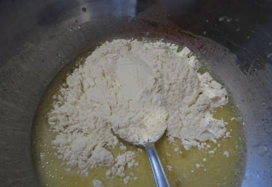 - Zeef hier bloem, meng en laat 30 minuten op een warme plaats staan.