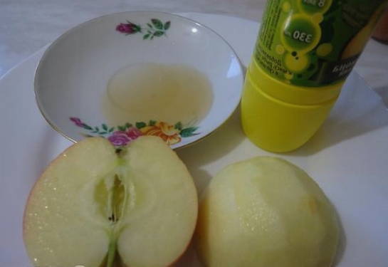 - Verdeel de appels in tweeën. We verwijderen de schil en botten. We bedekken de vruchten met citroensap.