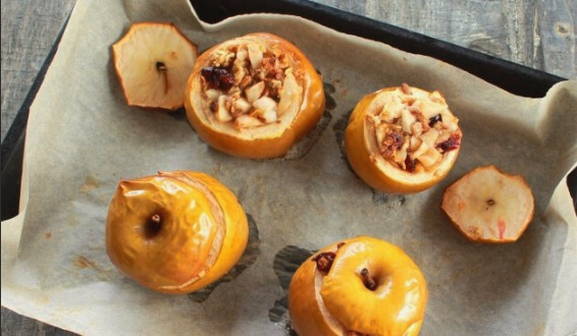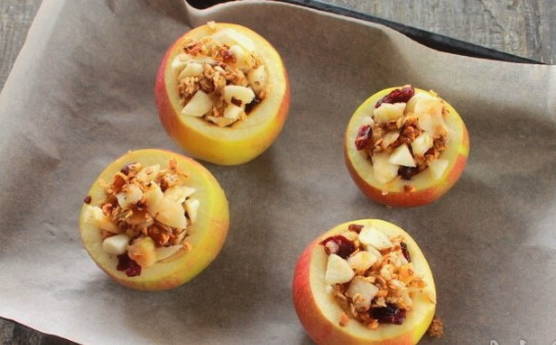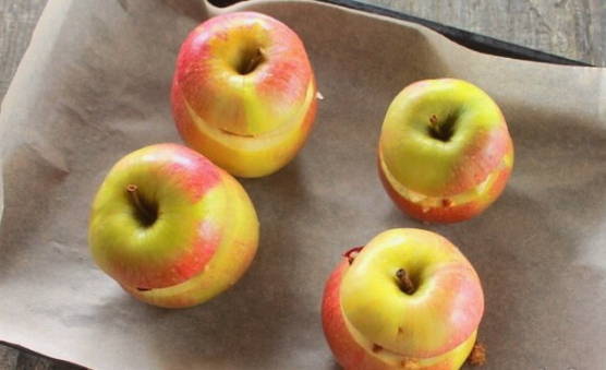 - Vul appels met gezonde vulling en leg ze op een bakplaat met bakpapier.