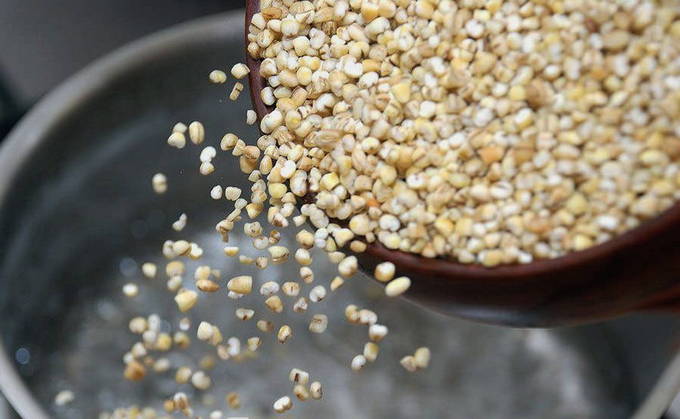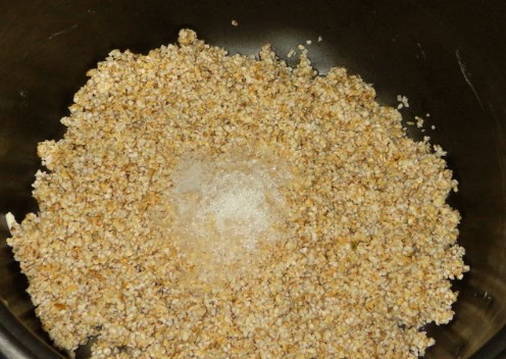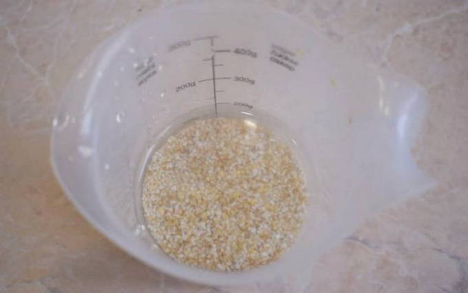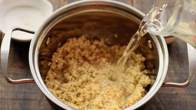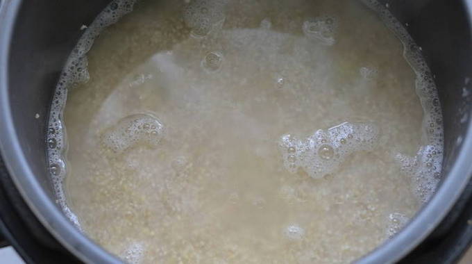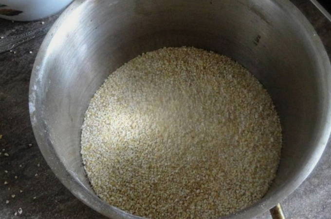 - Bereid eerst de granen voor. Het moet meerdere keren worden gespoeld en, indien nodig, worden uitgezocht.