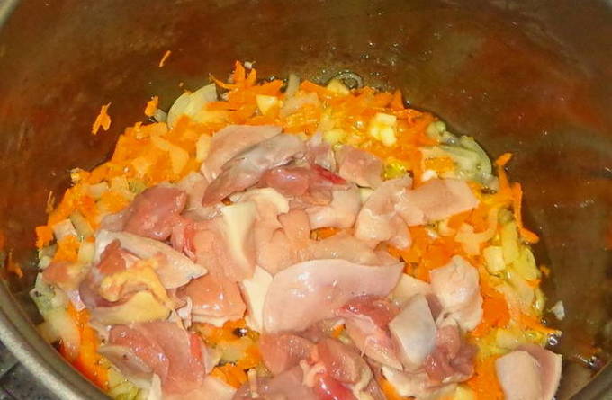 - Vervolgens sturen we het voorbereide product naar de multicooker-kom.