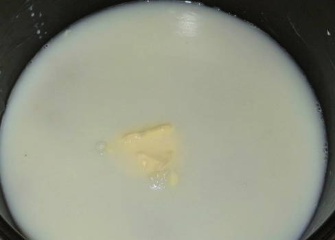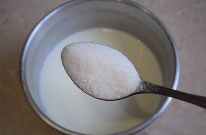 - Los een snufje zout en twee eetlepels suiker op in kokende melk.