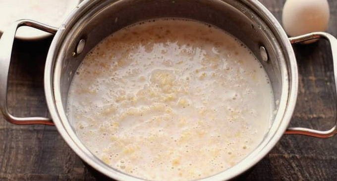 - Gerst pap met melk in een pan