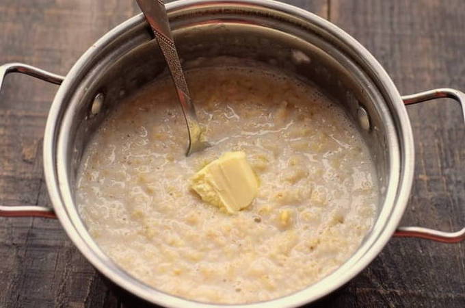 - Delicate en smakelijke gerstepap in water en melk is klaar. Je kan het proberen!