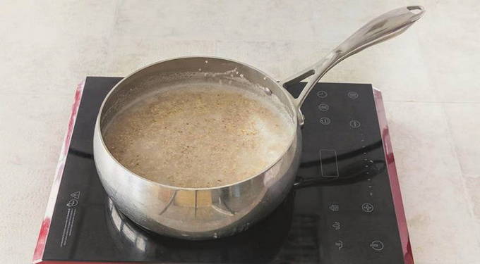 - Na alle procedures brengen we het graan over in een pan en zetten het op het fornuis.