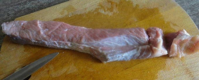 - We verspreiden de varkensstoofpot op een bord. Indien nodig verdelen we het in kleine delen.