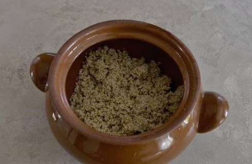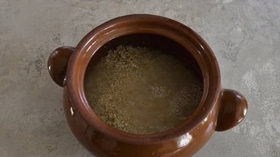 - We wassen de gerstekorrels, doen ze in een pan, vullen ze met water en koken 20 minuten.