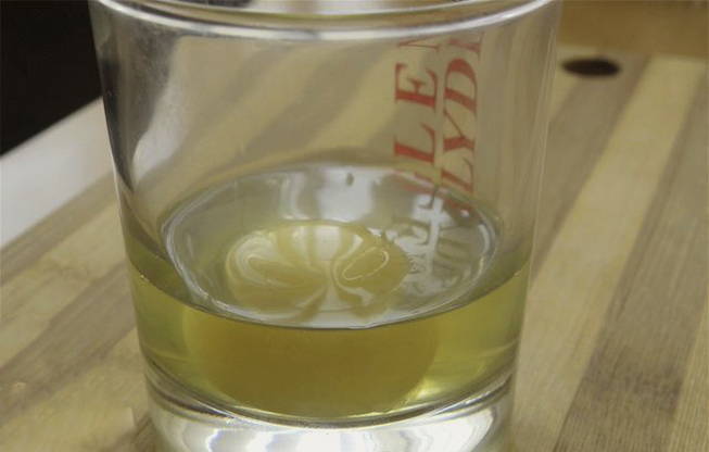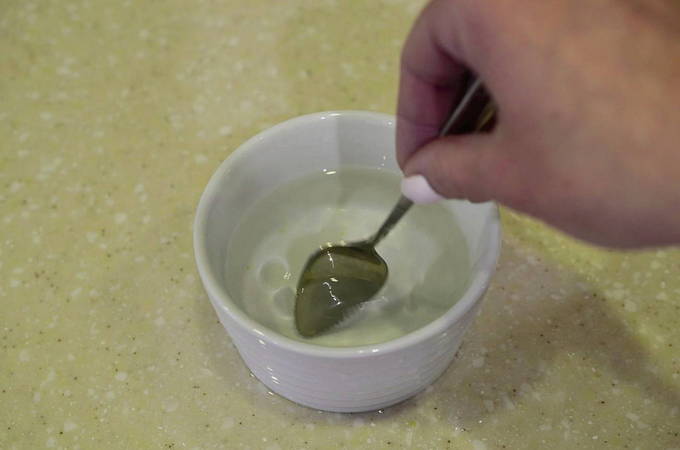 - Giet het gezuiverde drinkwater in een bak, voeg azijn toe, roer.