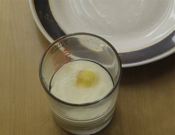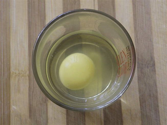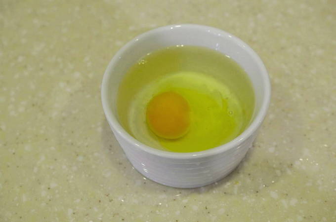 - Breek een kippenei in een glas, de integriteit van de dooier mag niet worden geschonden.