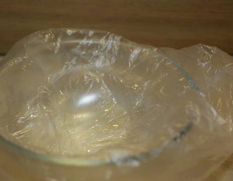 - Bedek een kleine kom met een plastic zak. Vet de zak in met plantaardige olie.