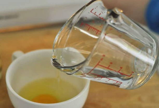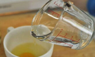 - Giet water in een glas met een ei en voeg zout naar smaak toe.