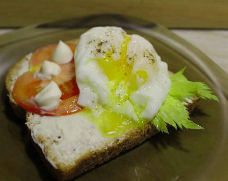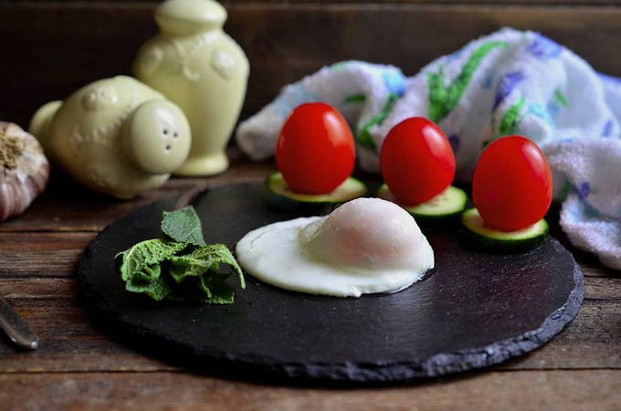 - Breng het gepocheerde ei op smaak met zout en serveer bij het ontbijt met verse groenten.