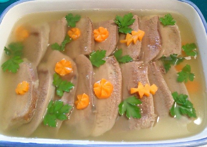 - Een eenvoudig recept voor gelei rundertong met toevoeging van agar-agar