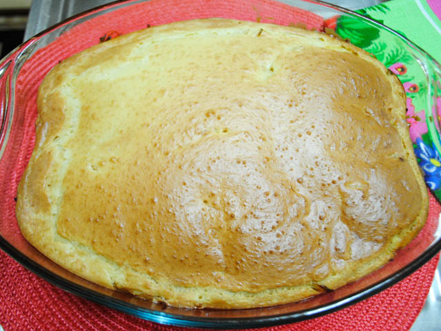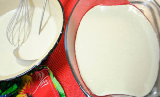 - Bedek een ovenschaal met zonnebloemolie en giet er een deel van het deeg in.