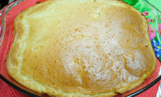 - Giet licht opgewarmde kefir in een kom voor het kneden van deeg, klop de eieren erdoor, voeg bakpoeder, zout en mayonaise toe en kneed het deeg met een garde. Het is niet nodig om het deeg lang te kneden, anders wordt het niet weelderig. De consistentie van het deeg moet als dikke zure room zijn.