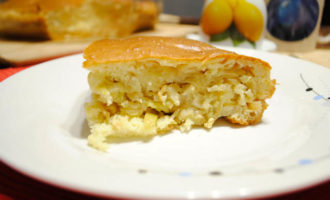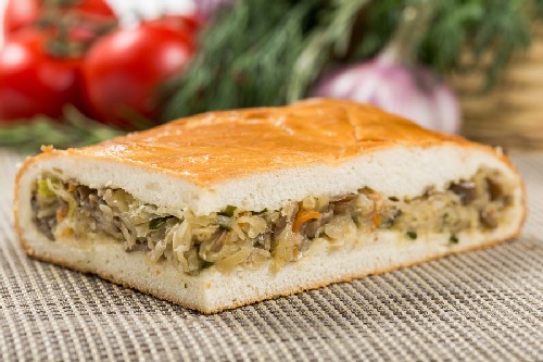 Stapsgewijs recept voor taart met kool en champignons op kefir