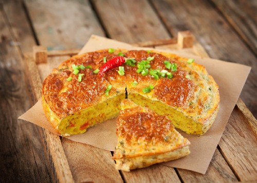 - Koel de gebakken taart en leg de vulling erop. Strooi verse kruiden over de taart.