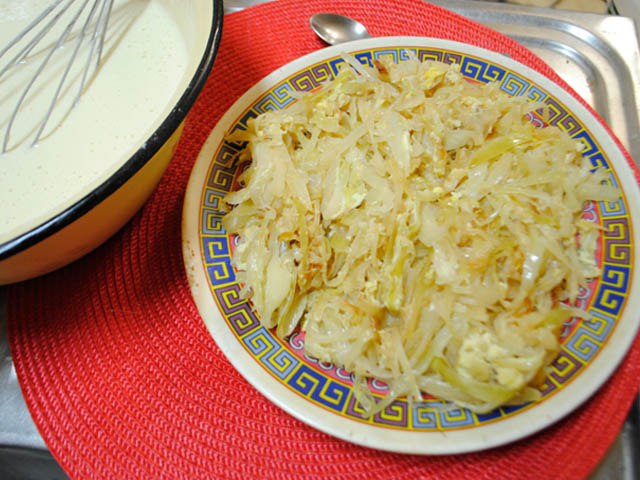 Bak de kool en het ei snel, gedurende 1 minuut.