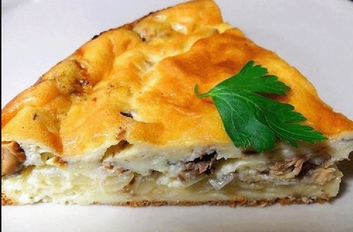 Een eenvoudig recept voor geleitaart met aardappelen en vis uit blik